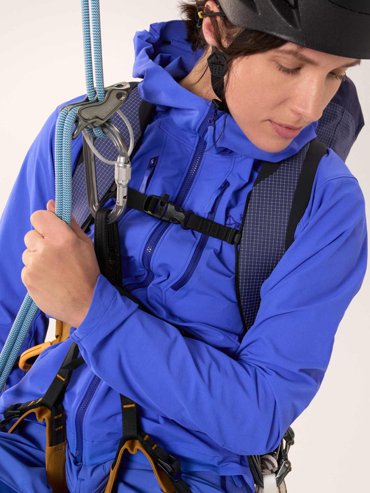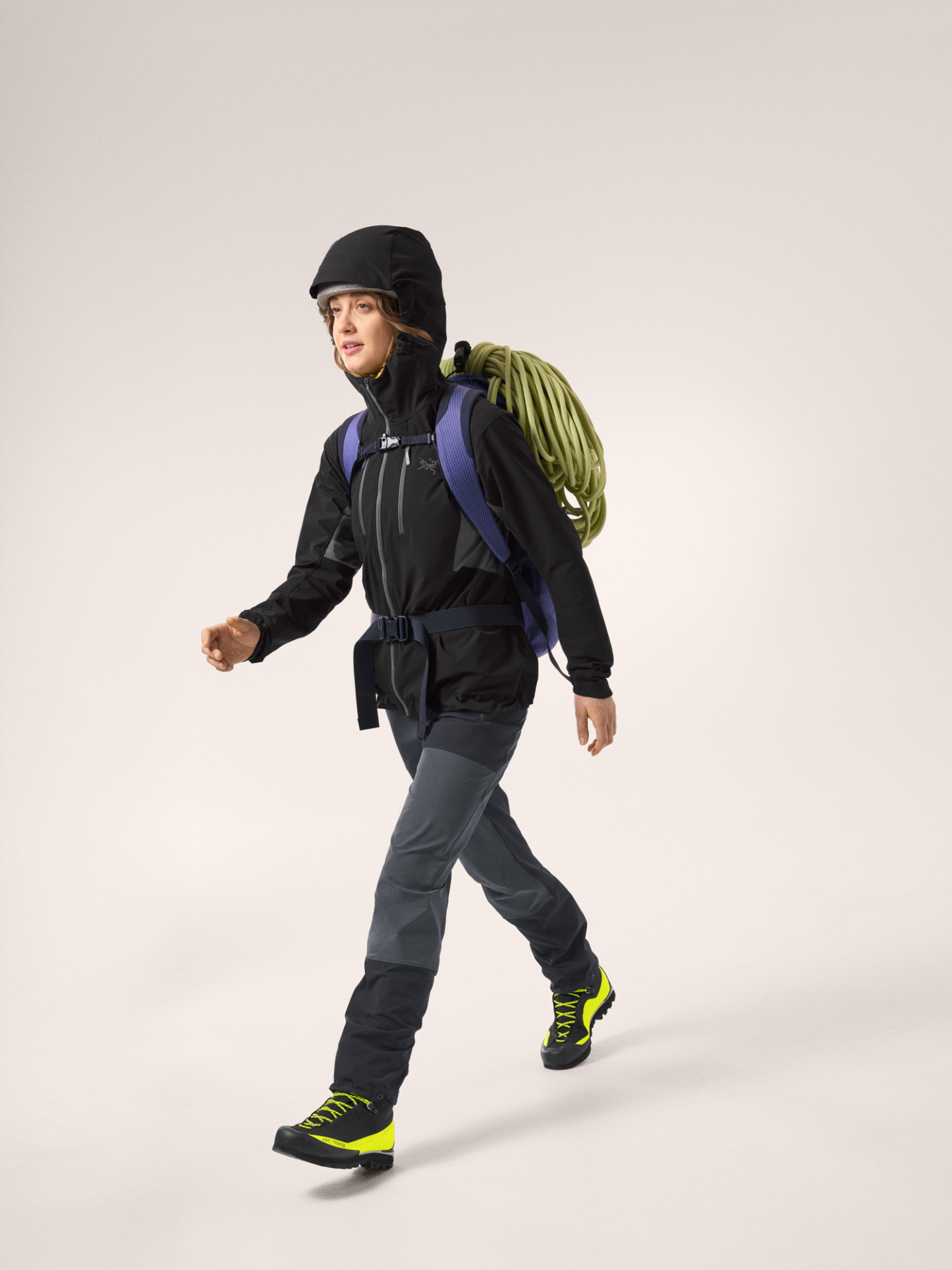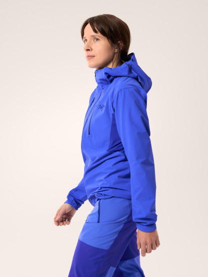 Whether it's your first alpine climb or most technical-to-date, the Psiphon has you covered. Our women's-specific Hybrid Mapping technology places fabrics where they're needed most: durable, breathable softshell at the torso, shoulders, hood, and waist protects you from wind, rain, and rock and lighter, highly air permeable fabrics under the arms to dump heat during key moves.