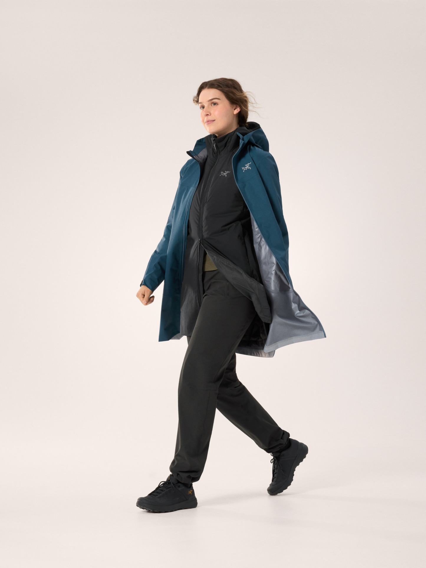 Designed for hikers, our iconic Atom Jacket has also been a longtime favourite of climbers, skiers, and snowboarders for breathable warmth in all kinds of mountain conditions. This long version gives you the same reliable Coreloft insulation (warmer through the body and lighter under the arms) that won't pack out or lose heat when it's wet—in a bum-covering length. It stands alone for a low-output day hike, slides easily under our long Beta shell for a clutch layering system that'll keep out any storm.