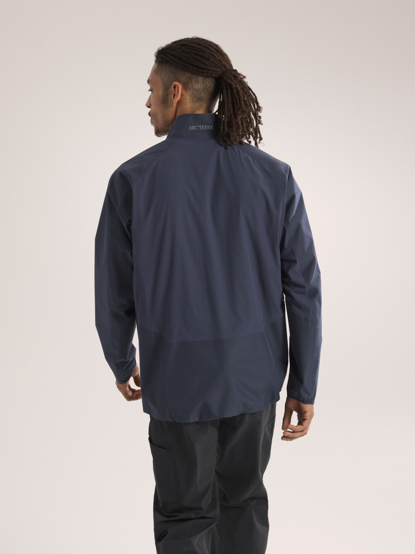 Knife through exposed passes and relentless headwinds in this elevation-ready hiking shell with all the features of the hoody by the same name — minus the hood. The two-layer GORE-TEX fabric on the body, hood, and sleeves provides focused wind protection and weather resistance without adding bulk to your worn weight. A highly breathable fabric under the arms and stretch-woven liner allow you to move naturally over scrambles and blowdown.