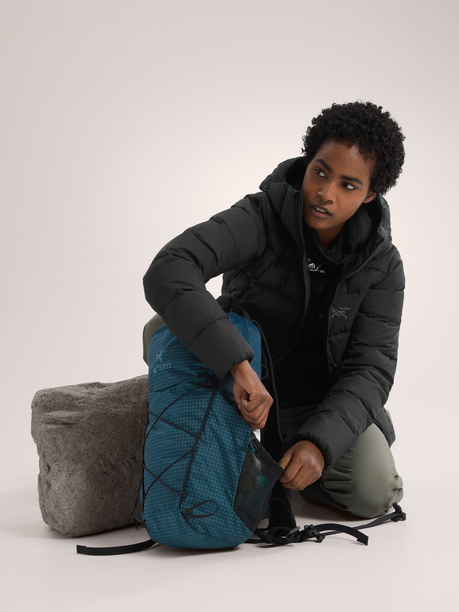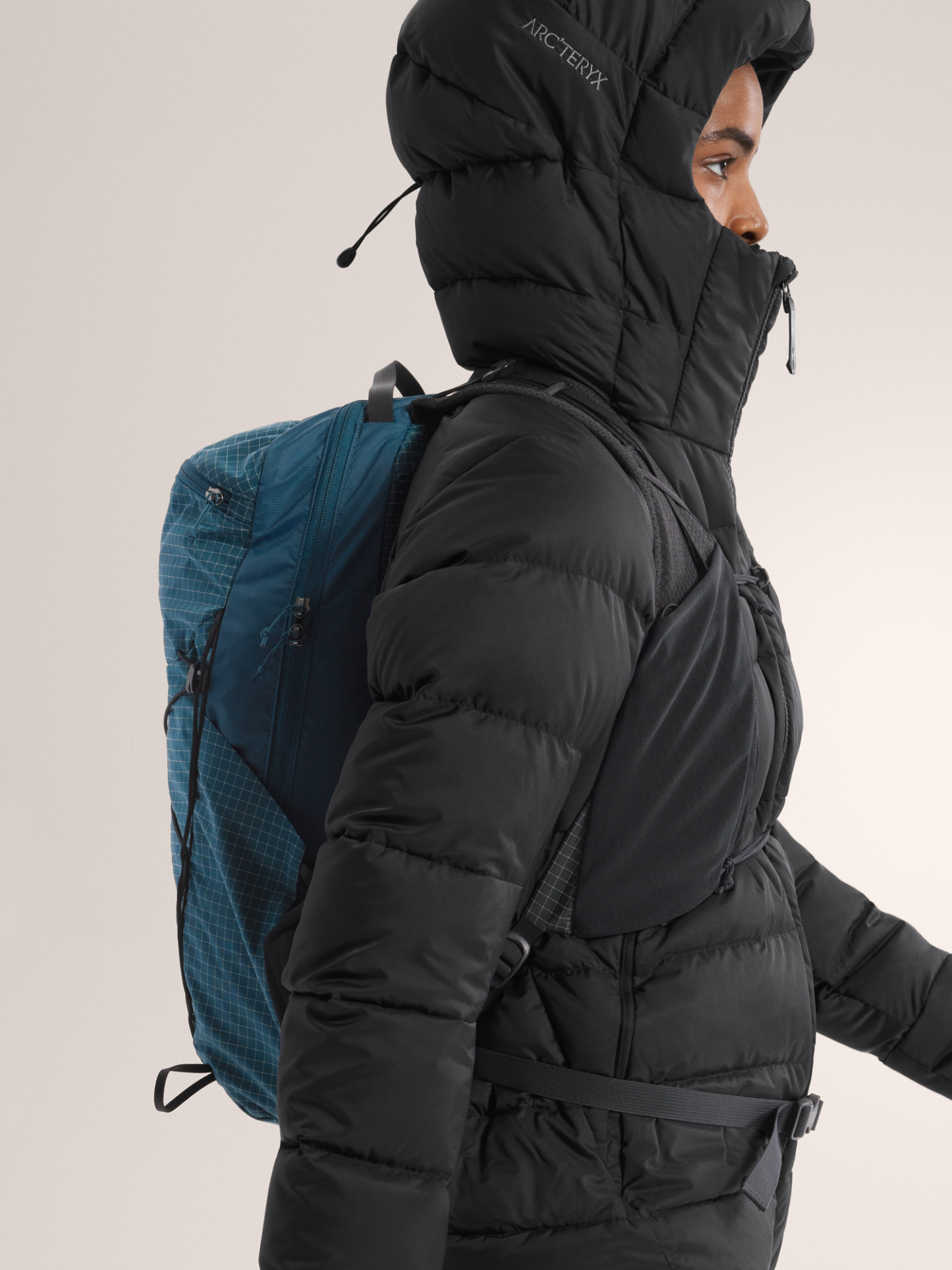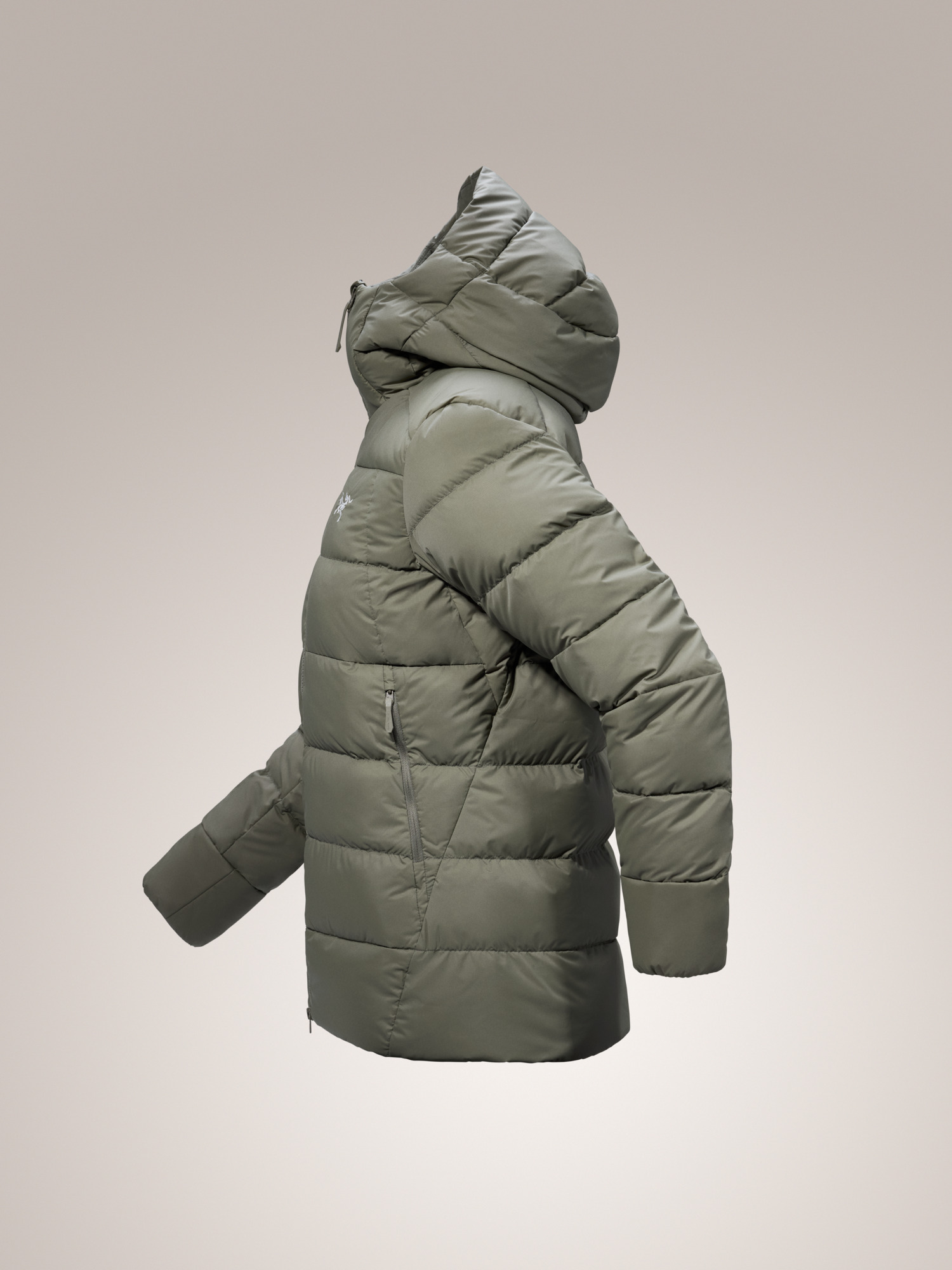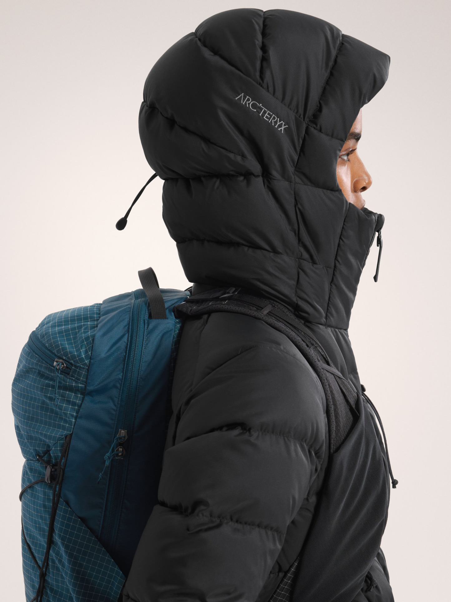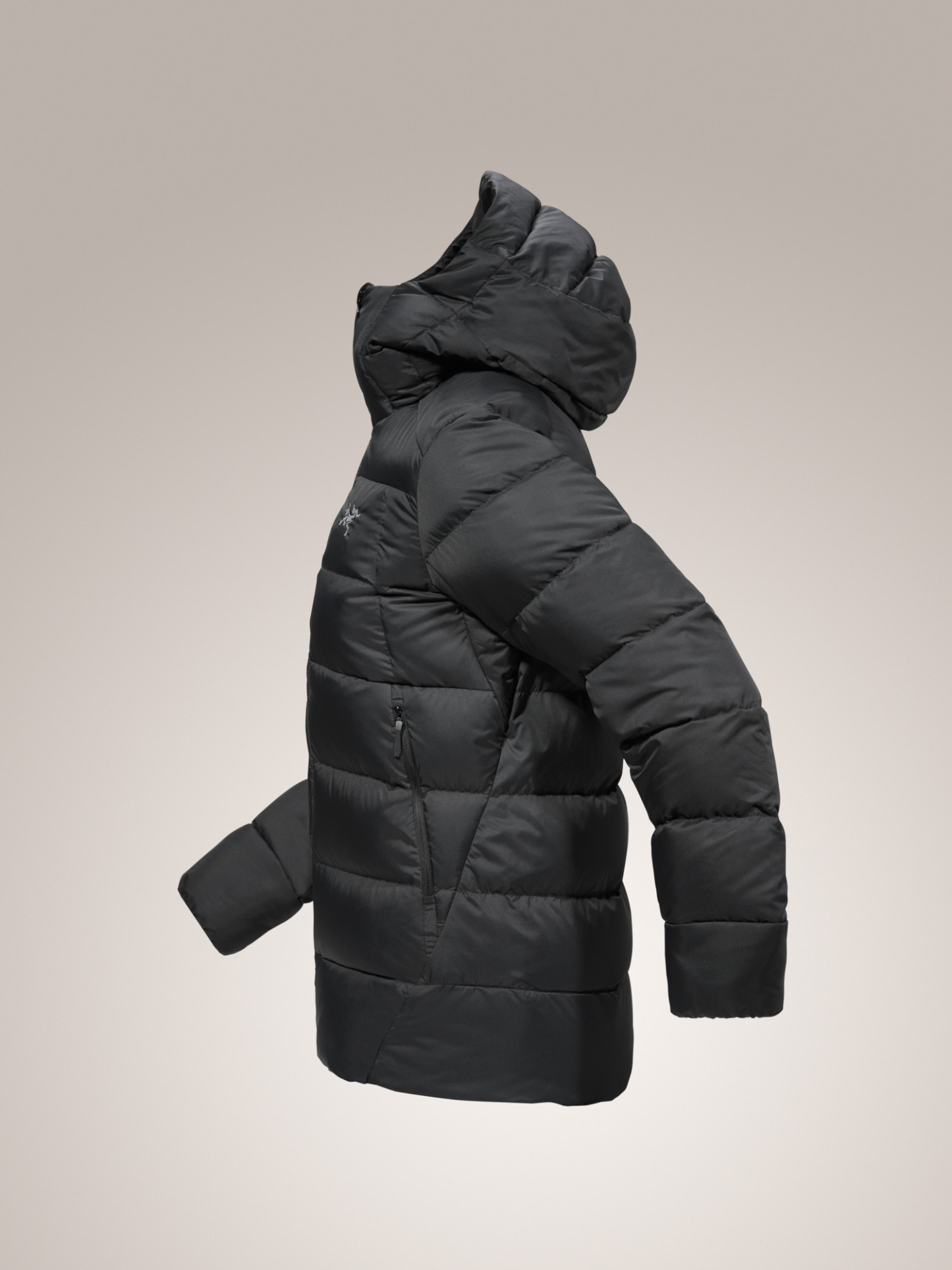 A proven hoody for cold, dry conditions, the Thorium delivers serious warmth and handles a wide range of environments. Packed with 750 fill-power Responsible Down Standard certified grey goose down, it offers outstanding thermal performance for its weight. Down Composite Mapping™ strategically places Coreloft™ synthetic insulation in areas prone to moisture. The light, durable Arato™ 30 nylon shell has a DWR treatment for water repellency, the liner ‘s bio-derived material reduces petroleum use, and the insulated adjustable hood fits over a helmet.